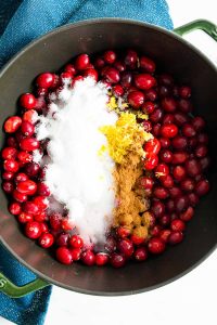 Reduce heat and simmer low for about 15-20 minutes. Once the berries start popping and the sauce begins to thicken it's ready to remove from the heat.